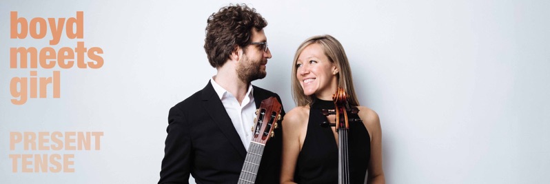 This new album, Present Tense, will contain a unique blend of repertoire, for which Boyd Meets Girl is known, including new compositions and arrangements that have been commissioned and/or made by Boyd Meets Girl in the past few years, as they expand the repertoire for cello and guitar. The album will include works by Caroline Shaw, Chrystian Dozza, Stephen Goss, Yaz Lancaster, Villa-Lobos, Ravel, The Beatles, Stevie Wonder, Radiohead and more.